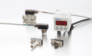a flow rate adjustable needle is integral to the sensor. Time of the piping is not applied, can be space-saving installation. -